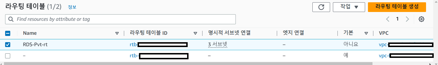 2. RDS가 사용하고 있는 라우팅 테이블을 클릭합니다.