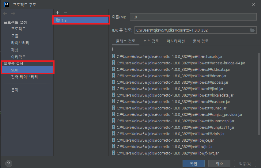 ✔ 인텔리제이(IntelliJ)는 자체적으로 Java SDK를 자동으로 설치하는 기능을 제공합니다.