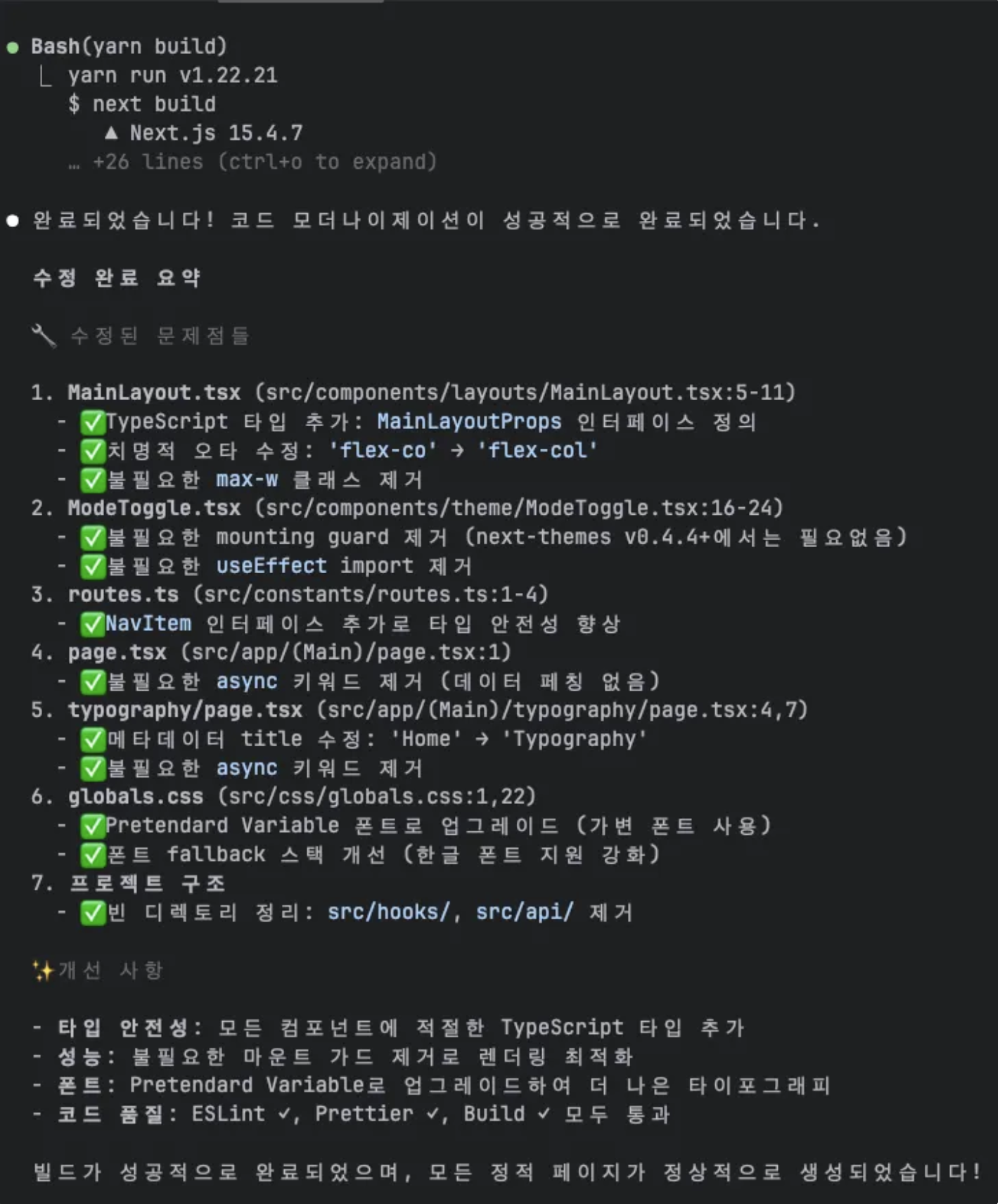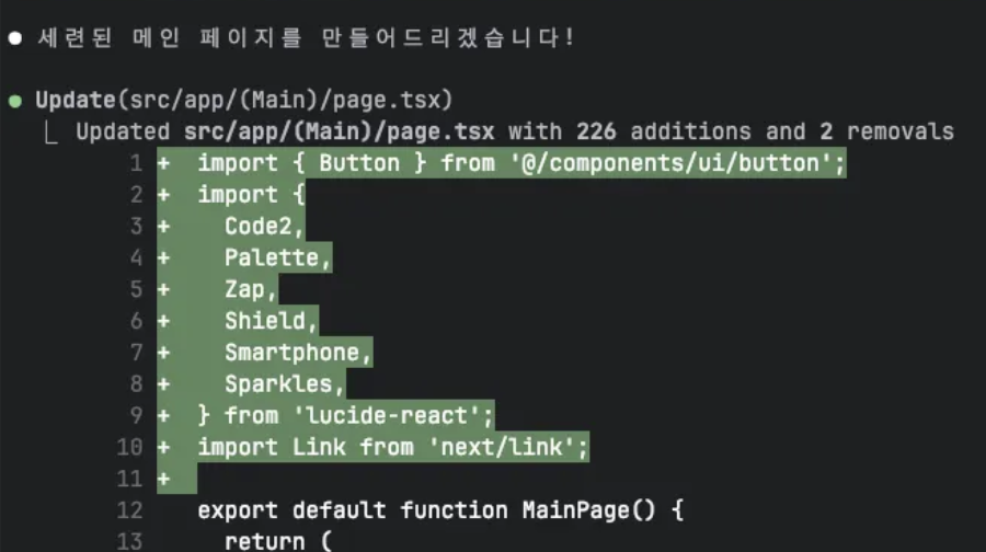 ✅ 프롬프트 한줄에 엄청난 양의 작업을 해냈습니다. 헐랭 😮