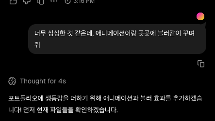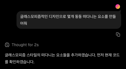 프롬프트를 통해 원하는 것을 설명하면 지능형 에이전트가 구현해 줍니다. (딸깍)