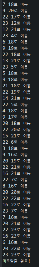 System.out.println("미로탈출 완료!");