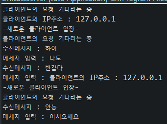 스레드가 생성되면 새로운 클라이언트가 입장했다는 메세지를 프린트한다.